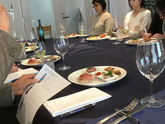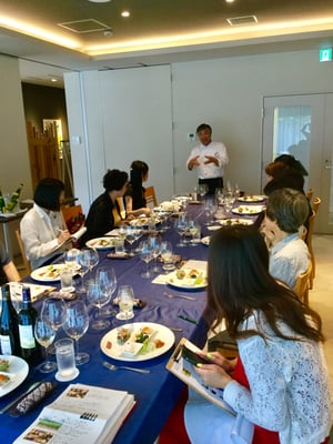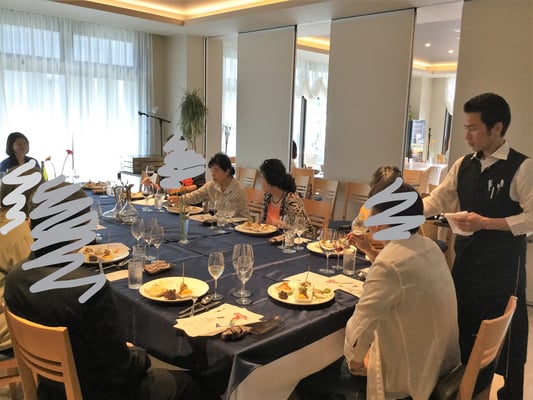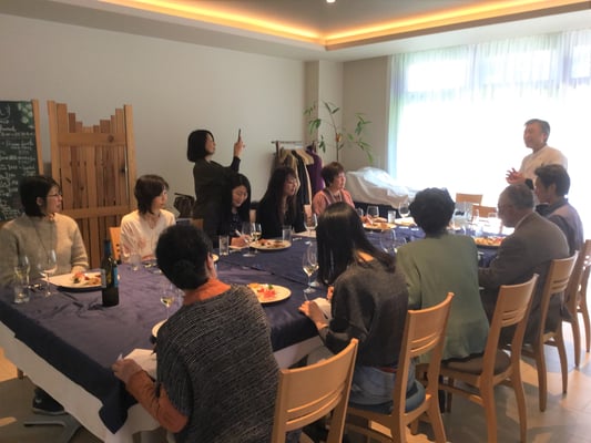 お話は、イタリアン・ワインのことから、ワイングラスのこと、お食事との合わせ方など、多岐に盛り上がり、加賀屋さんへの質問も白熱しておりました。