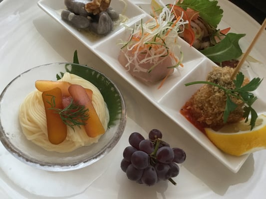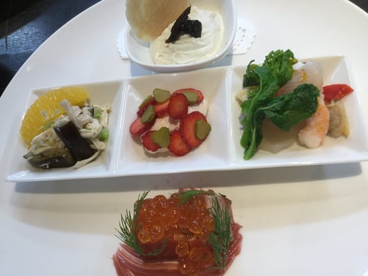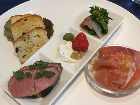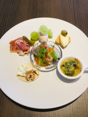 オードブルの盛り合わせは、『冷製のカッペリーニ、カラスミ添え』や『シャドークィーンのニョッキ、ゴルゴンゾーラ・ソース』などなど