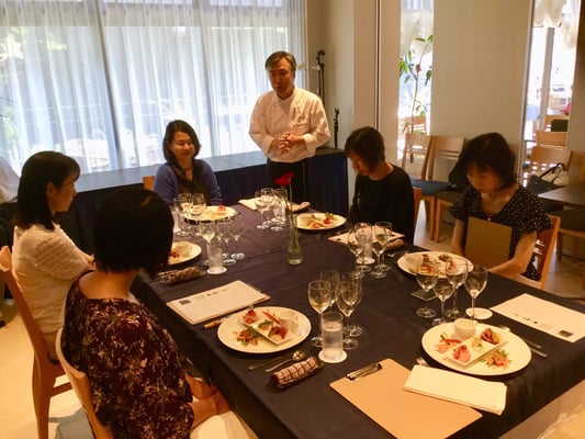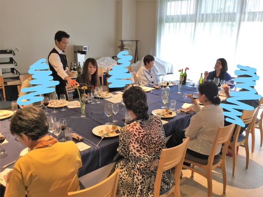 だから、写真には『ワインを注ぐ生徒さん』も。