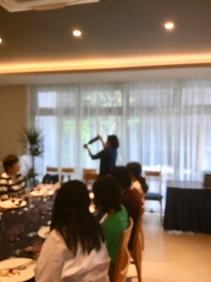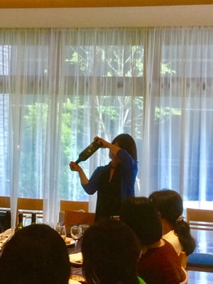 後半には、皆さんでソムリエナイフを使ったコルク抜栓の練習もしました。